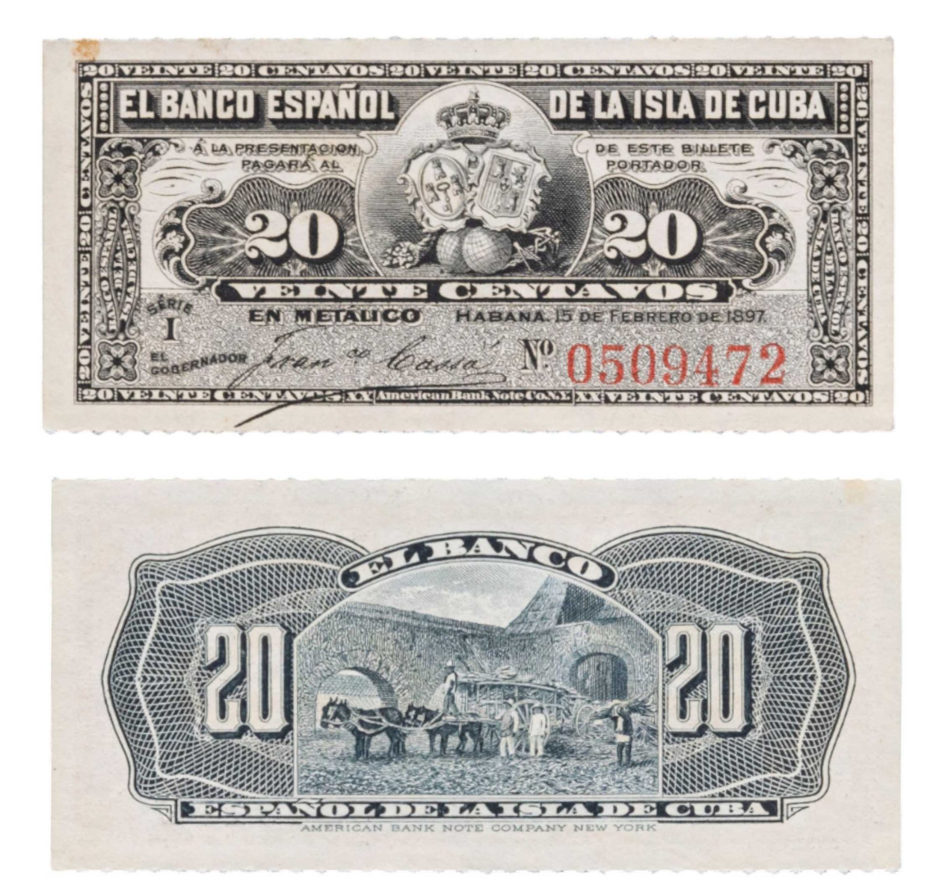 Куба 20 сентаво 1897 года P-53