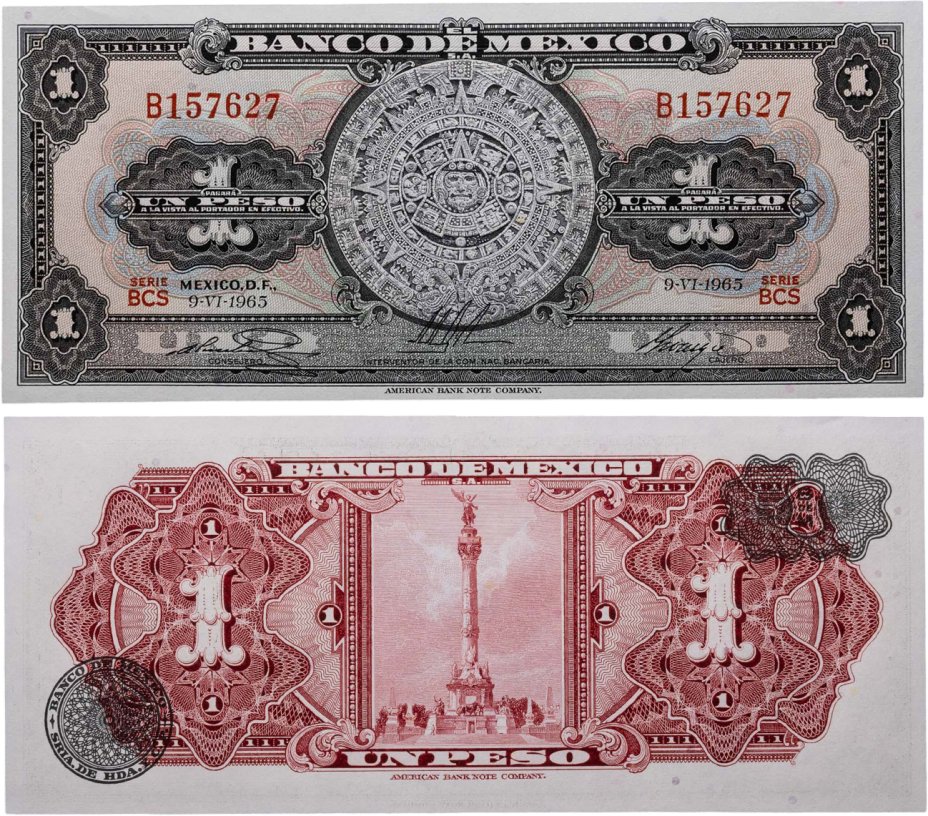 Мексика 1 песо 1965 год "Календарь Ацтеков. Статуя Победы, Мехико" Pick 59i
