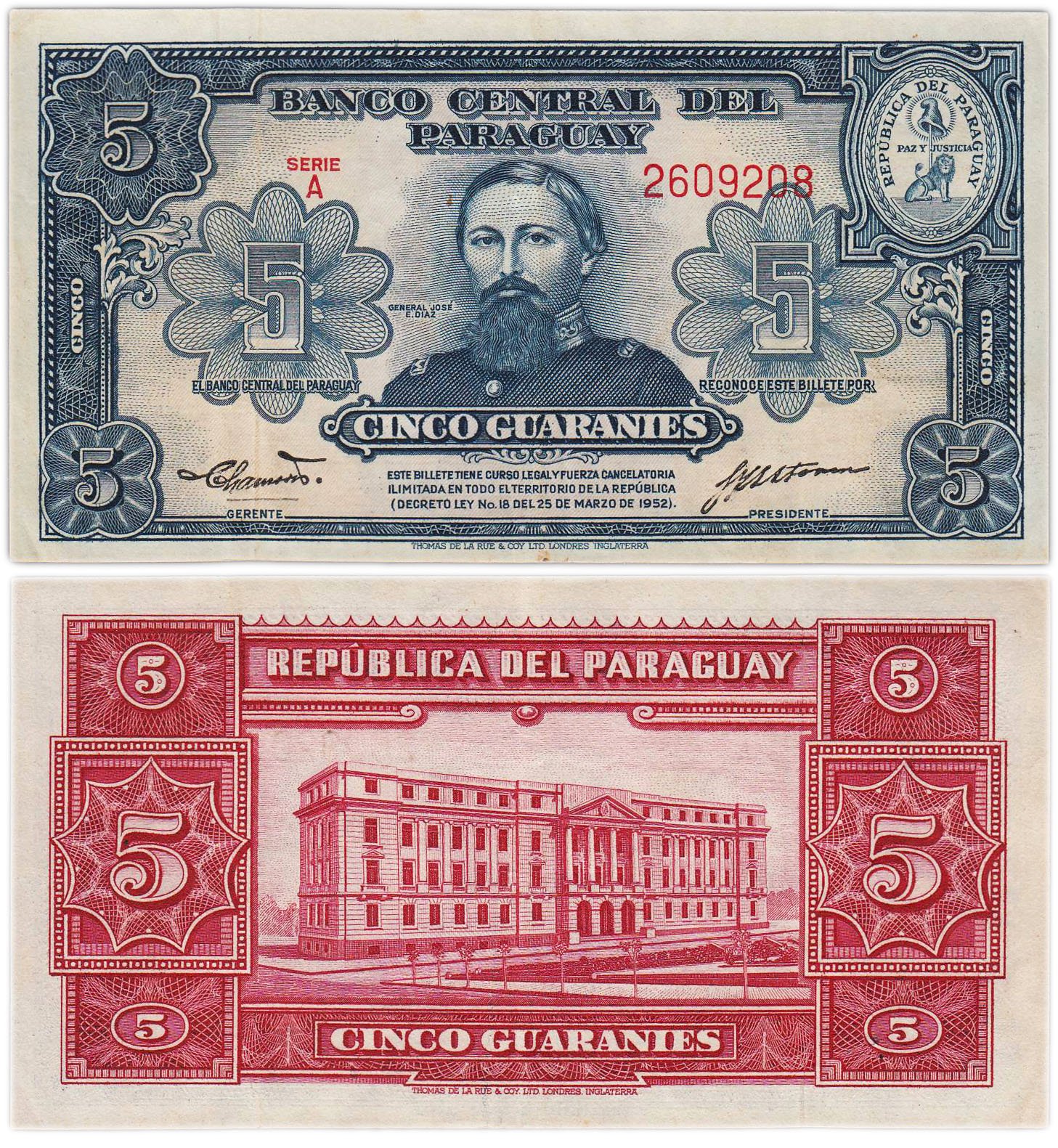 Парагвай 5 гуарани 1952 год PIck 186a(2) Серия А