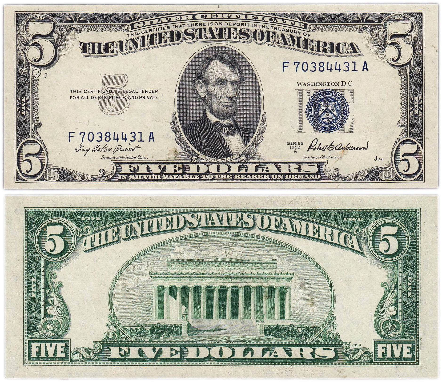 Купить США 5 долларов 1953 Series 1953 Синяя печать