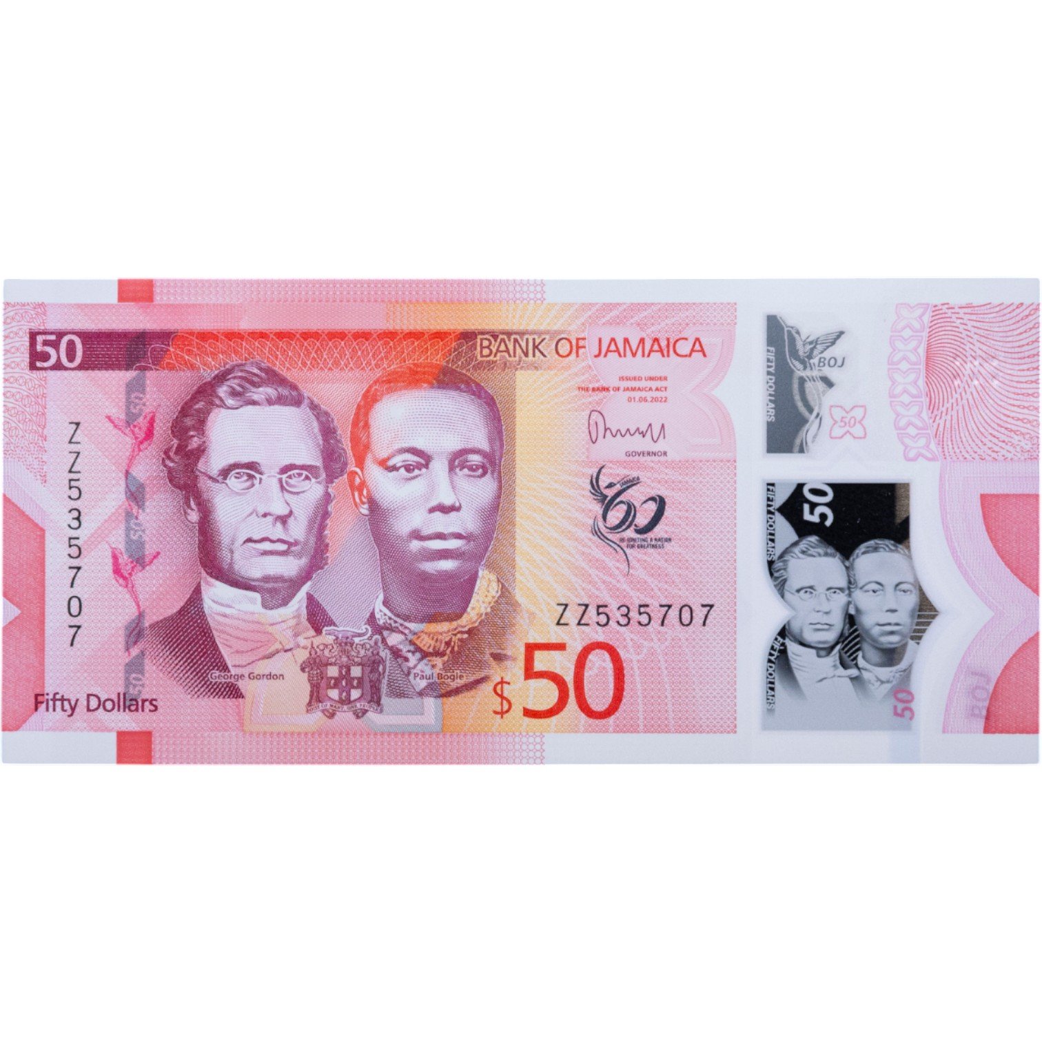 купить Ямайка 50 долларов 2022 год. Р-W96. 60 лет независимости. Полимер. серия ZZ -замещения