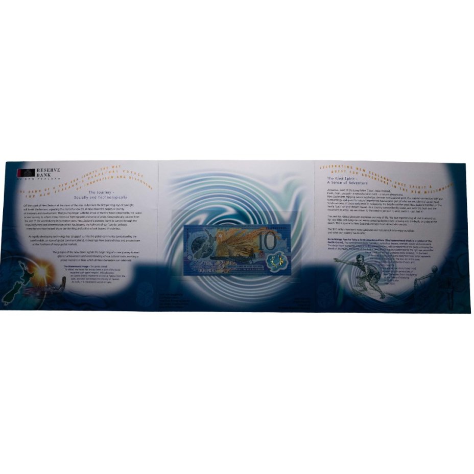 Новая Зеландия 10 долларов 2000 года (Pick 190b) с надпечаткой в Буклете
