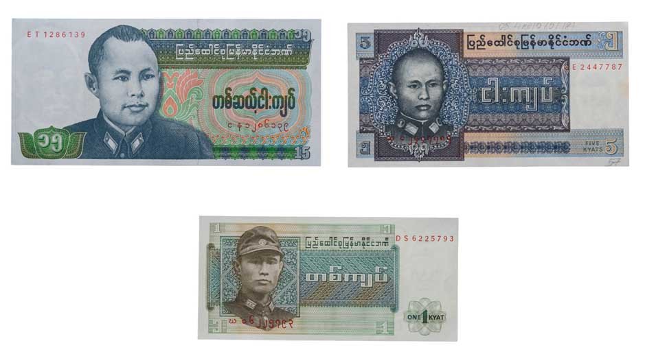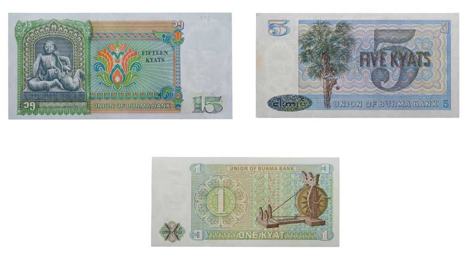Независимость Бирмы провозгласила в 1948 году, управление денежного обращения Бирмы выпустило новые банкноты бирманских рупий от имени правительства страны. Кьят заменил рупию в 1952 году в соотношении один к одному, состоит из 100 пья.