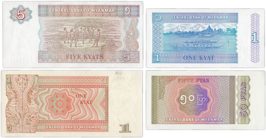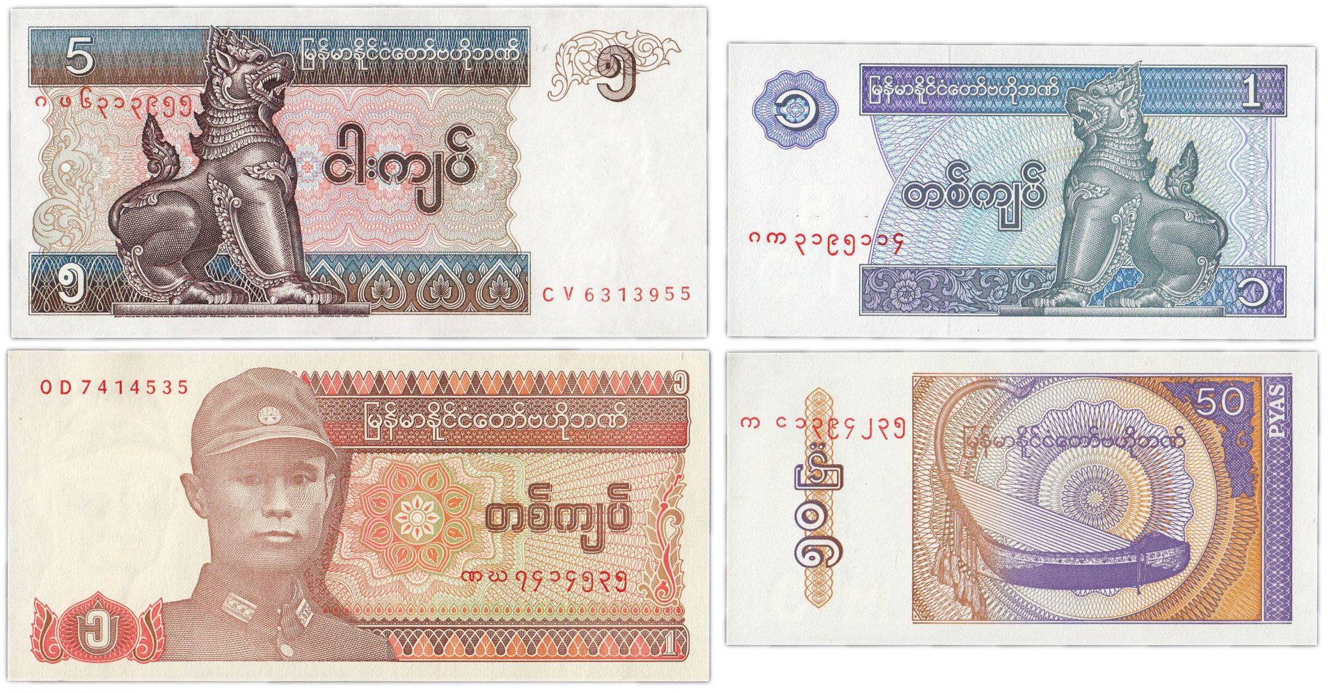 Набор состоит из банкнот Бирмы 5 штук 15, 35, 45, 75 и 90 кьят 1985 -1986 - 1987 aUNC - UNC