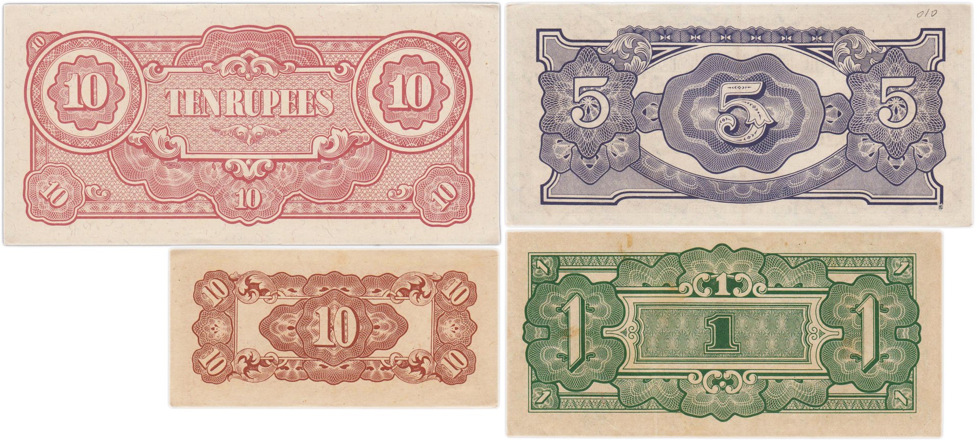 Бирма (Японская оккупация) набор из 4 банкнот 50 центов и 1, 5, 10 рупий 1942-1944