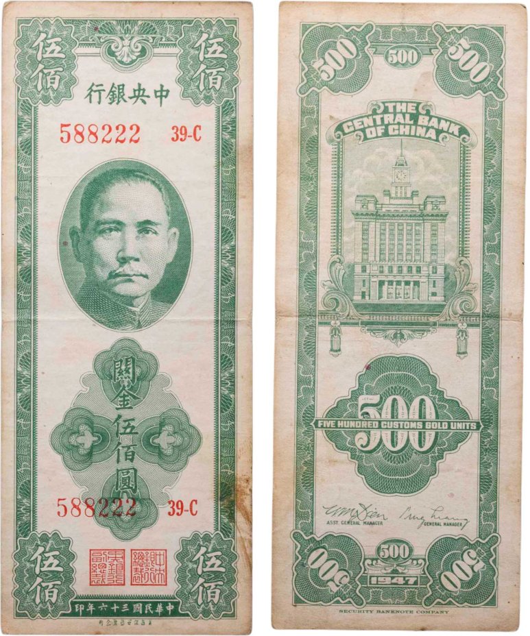 Китай 500 таможенных золотых единиц 1947