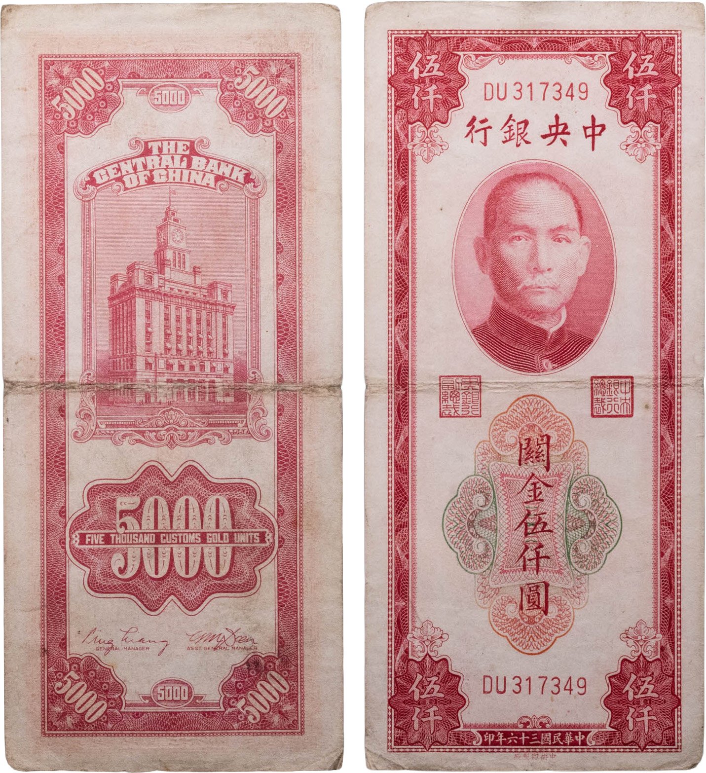 Китай 5000 золотых таможенных единиц 1947