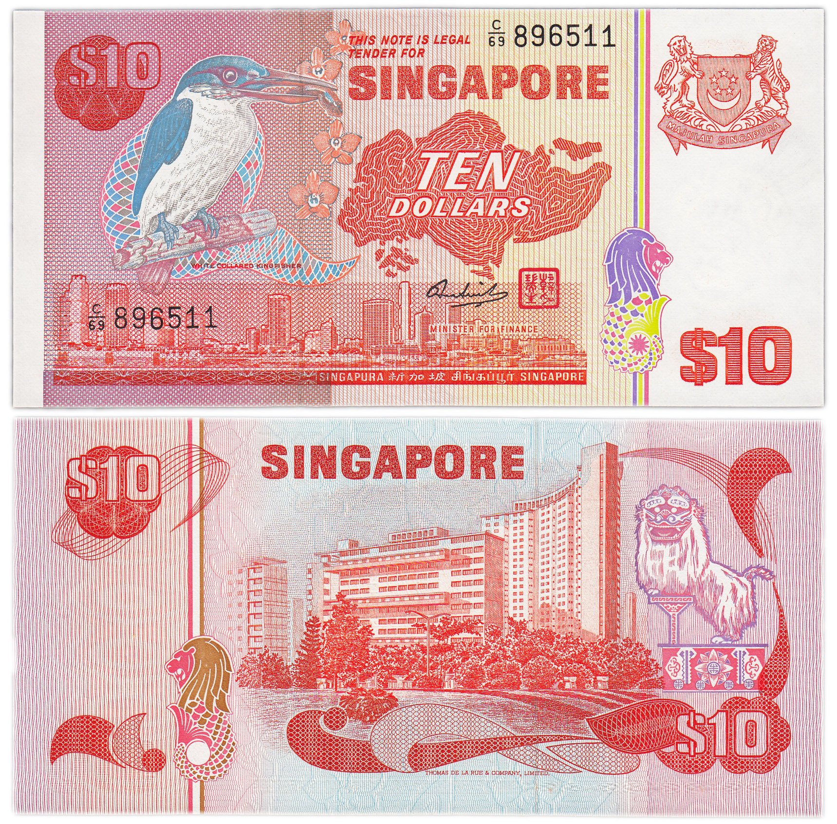 Сингапур 10 долларов 1976 (1980) Птицы "Белохоловый зимородок" Pick 11b