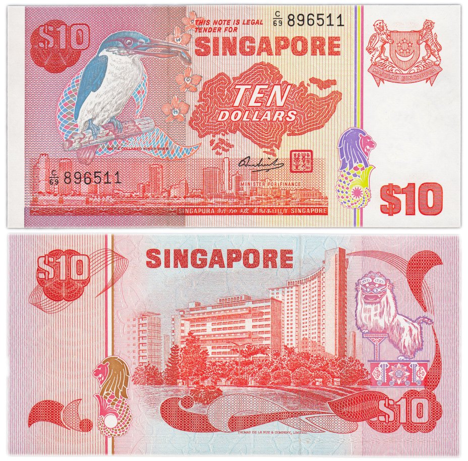 Купить Сингапур 10 долларов 1976 (1980) Птицы "Белохоловый зимородок" Pick 11b