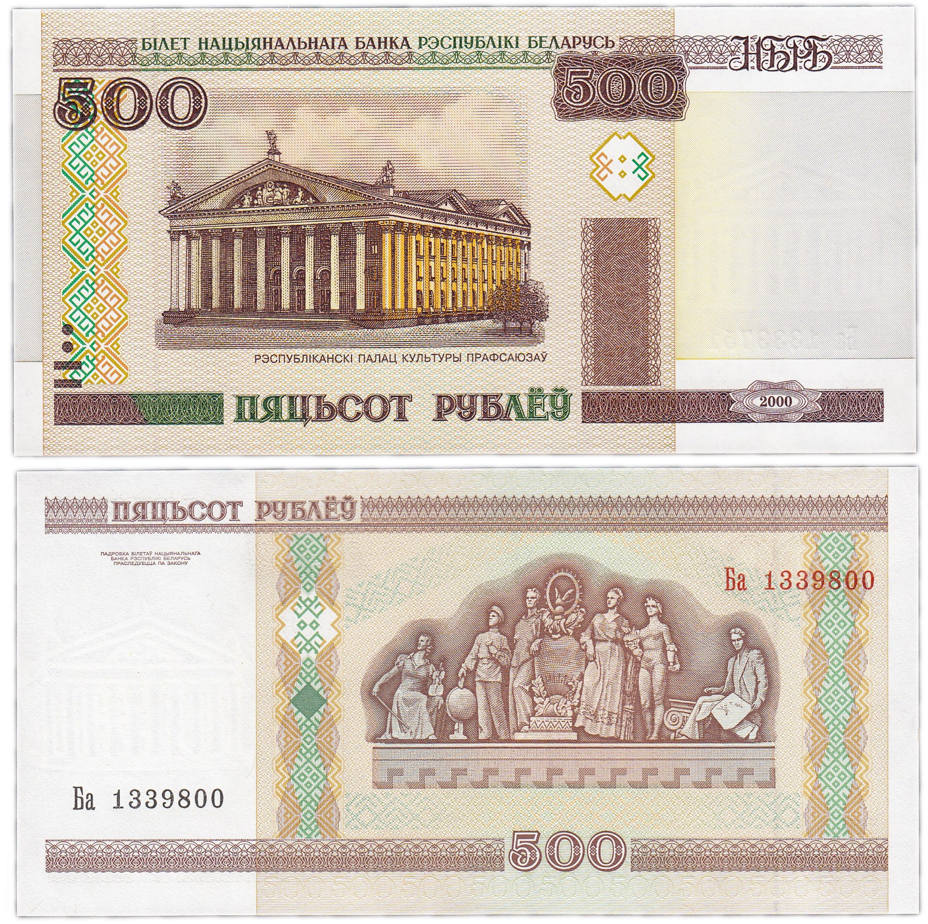 Беларусь 500 рублей 2000 (Pick 27a)
