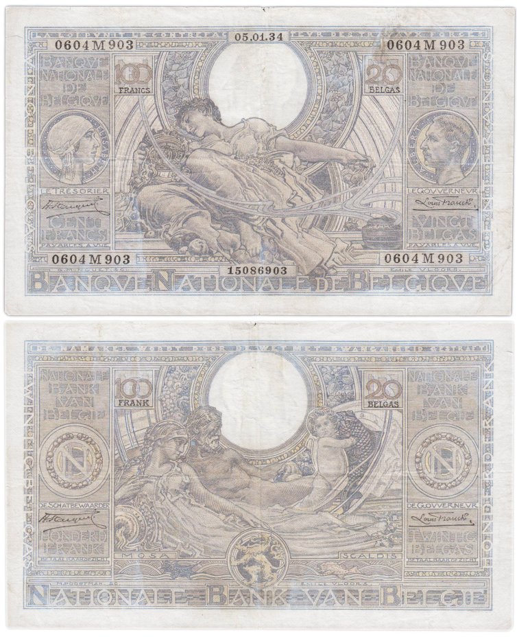 Купить Бельгия 100 франков 1934 (Pick 107)
