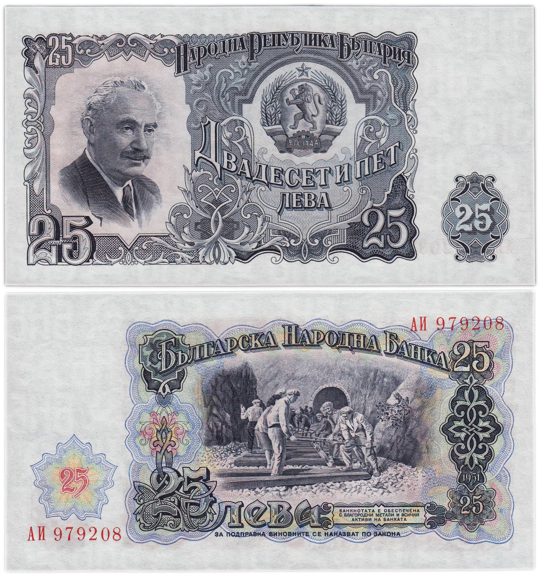Болгария 25 лева 1951 "Георгий Димитров. Строительство железной дороги" (Pick 83)