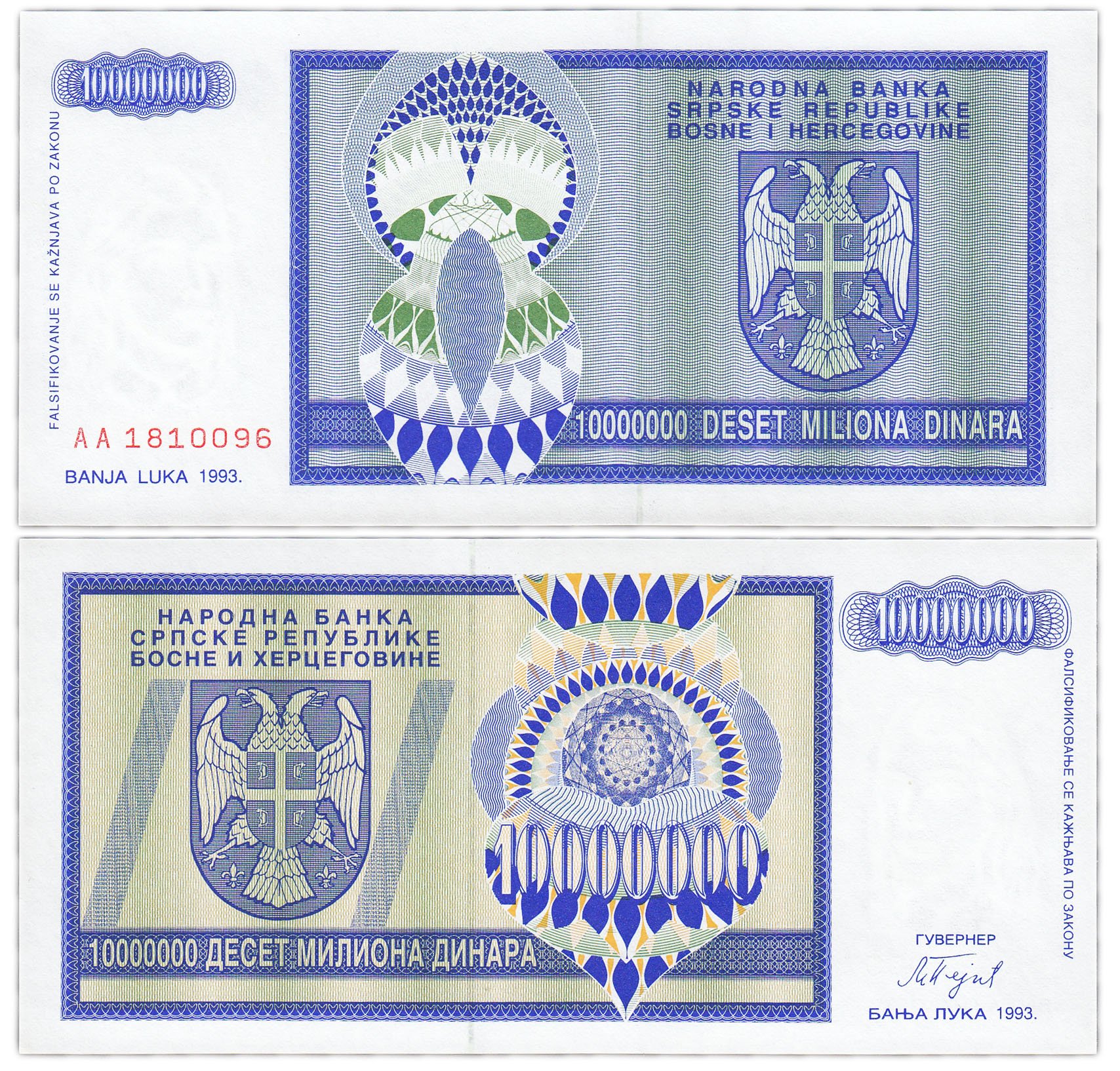 Босния и Герцеговина -10000000 (10 миллионов) динар 1993 "Банья Лука" (Pick 144a)