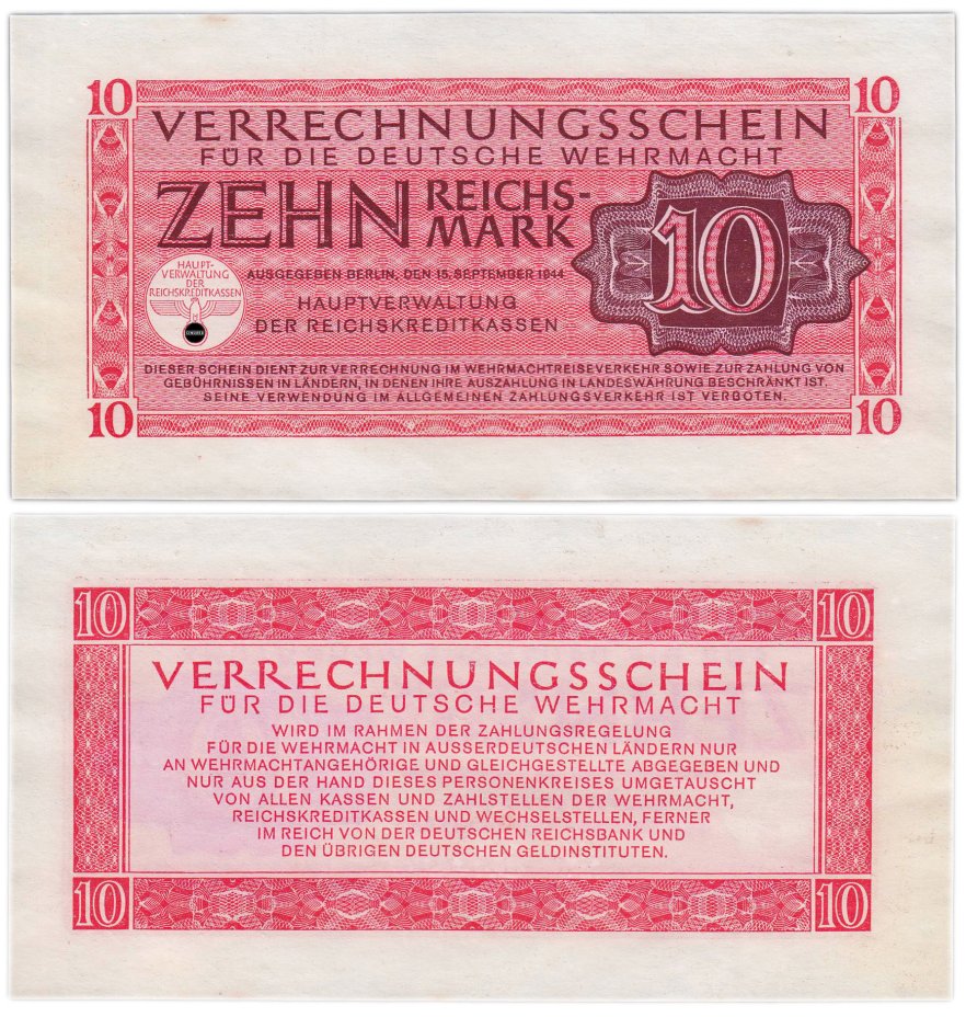Германия 10 рейхсмарок 1944 вспомогательное платёжное средство Вермахта
