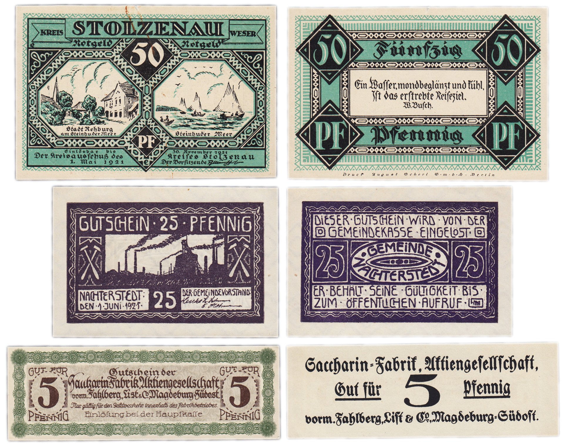 Германия (Веймарская Республика) набор из 3 банкнот 5, 25, 50 геллеров 1921