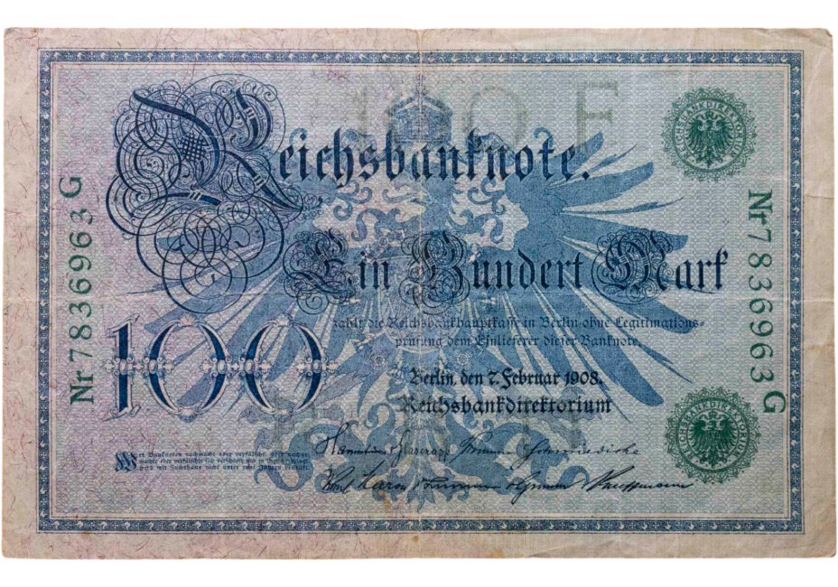 Германия 100 марок 1908 года (Зеленая печать)