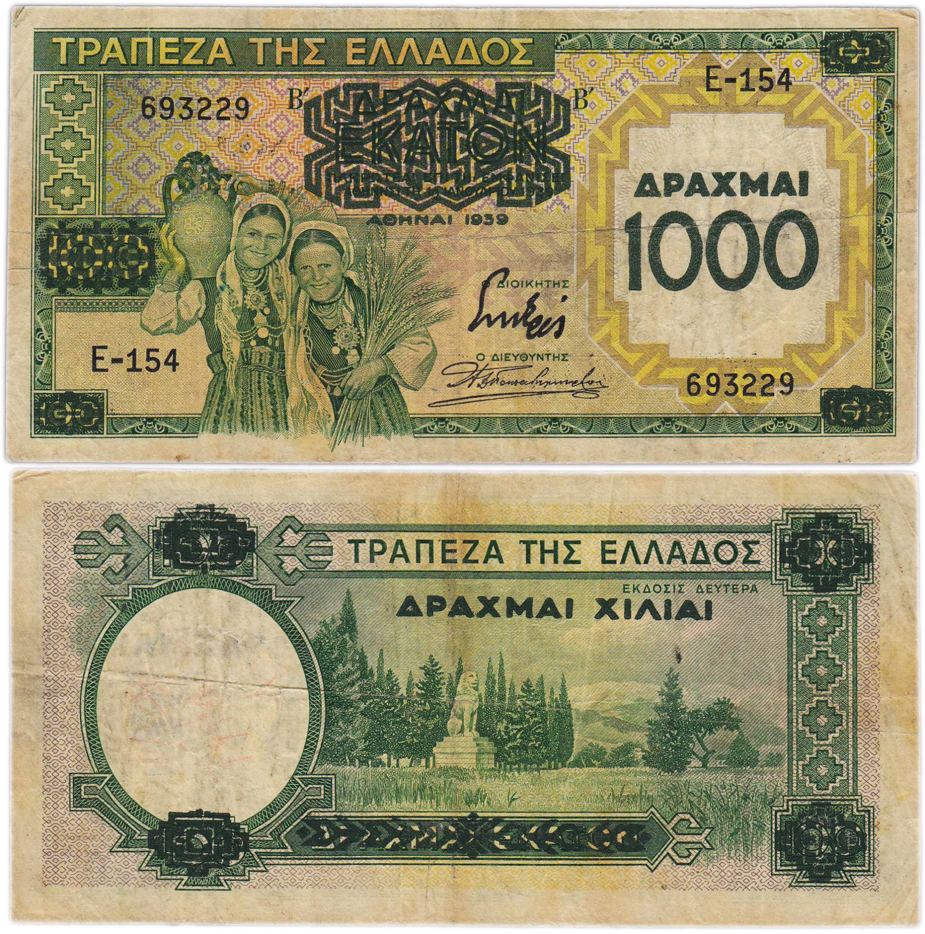 Греция - 1000 драхм 1939 (1941) год "Лев. Хайрония"
