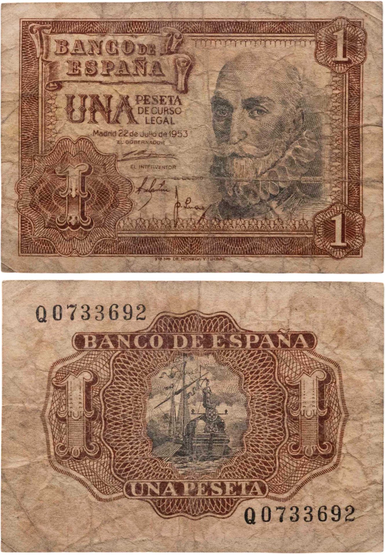 Испания 1 песета 1953