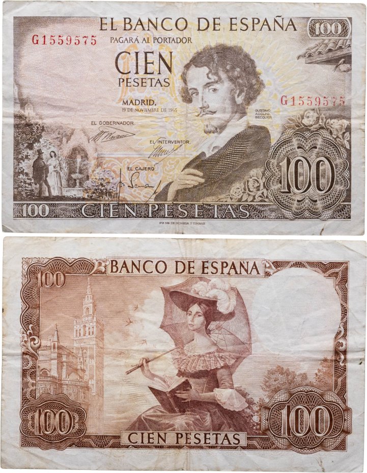 Испания 100 песет 1965 (Густаво Адольфо Беккер)