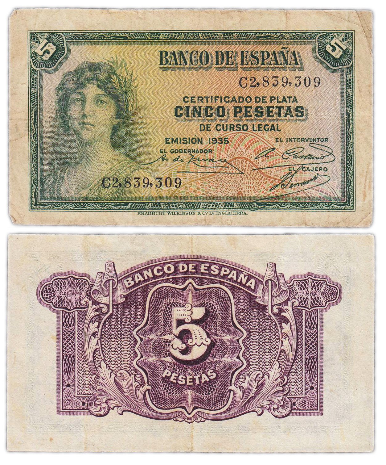 Купить Испания 5 песет 1935 Pick 85a(2)