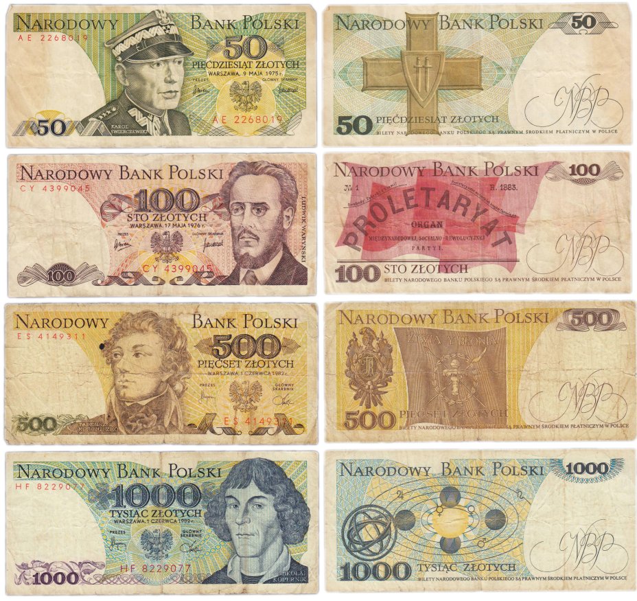 Польша набор из 3 банкнот 50, 100, 1000 злотых 1975-1982