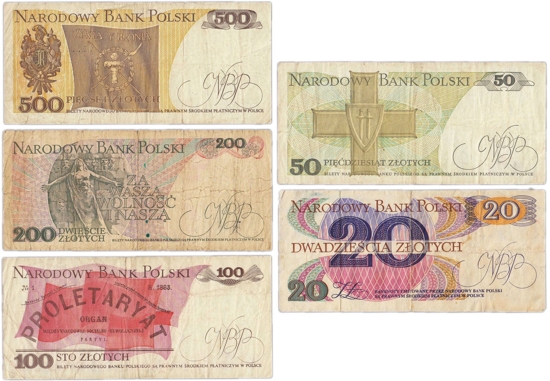 купить Польша набор из 5 банкнот 20, 50, 100, 200, 500 злотых 1982-1988