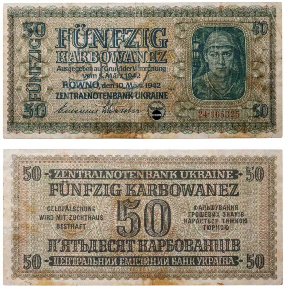 Купить Германия, Третий Рейх 50 карбованцев 1942 Украина, Ровно, Немецкая оккупация