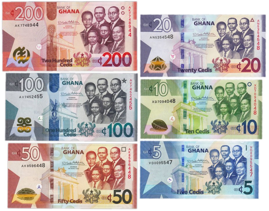 Гана набор из 6 банкнот 5 10 20 50 100 200 седи 2022