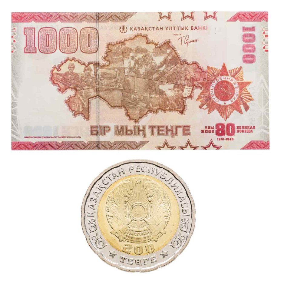 Казахстан набор 200 и 1000 тенге 2025 - 80 лет Победы