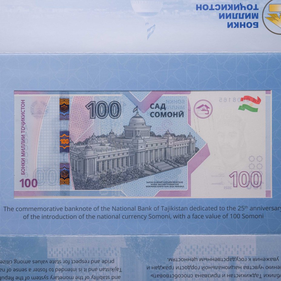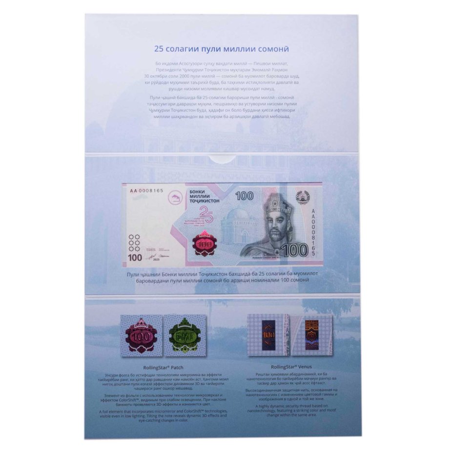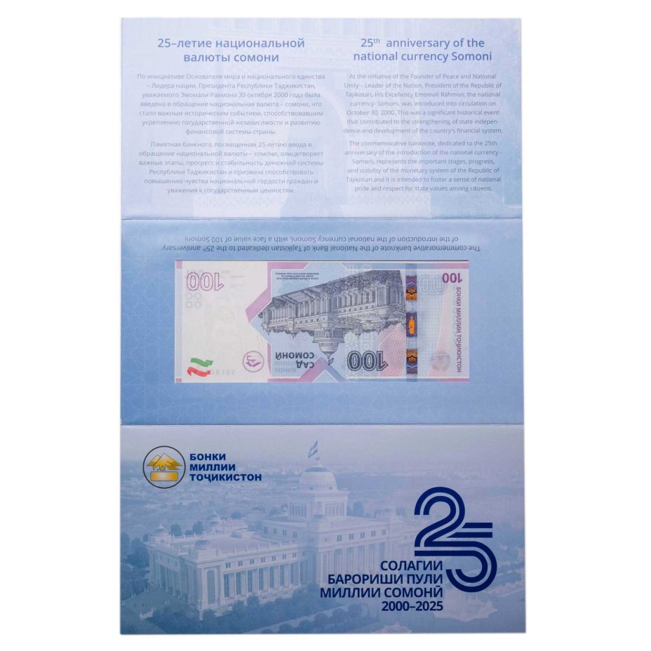 Таджикистан 100 сомони 2025 "25 лет национальной валюте" в буклете