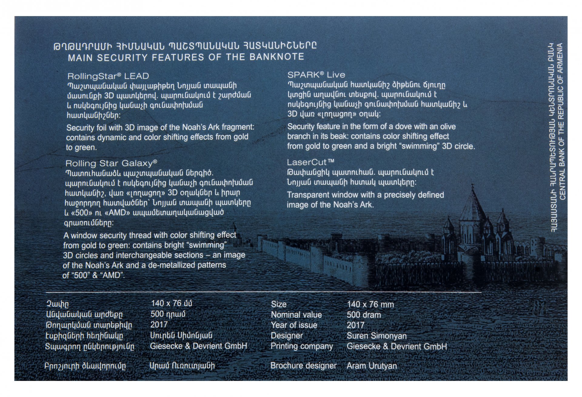 Армения 500 драм 2017 "Ноев ковчег" в буклете (Pick 60)