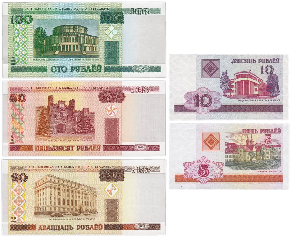 Купить Беларусь набор из 5 банкнот 5, 10, 20, 50, 100 рублей 2000