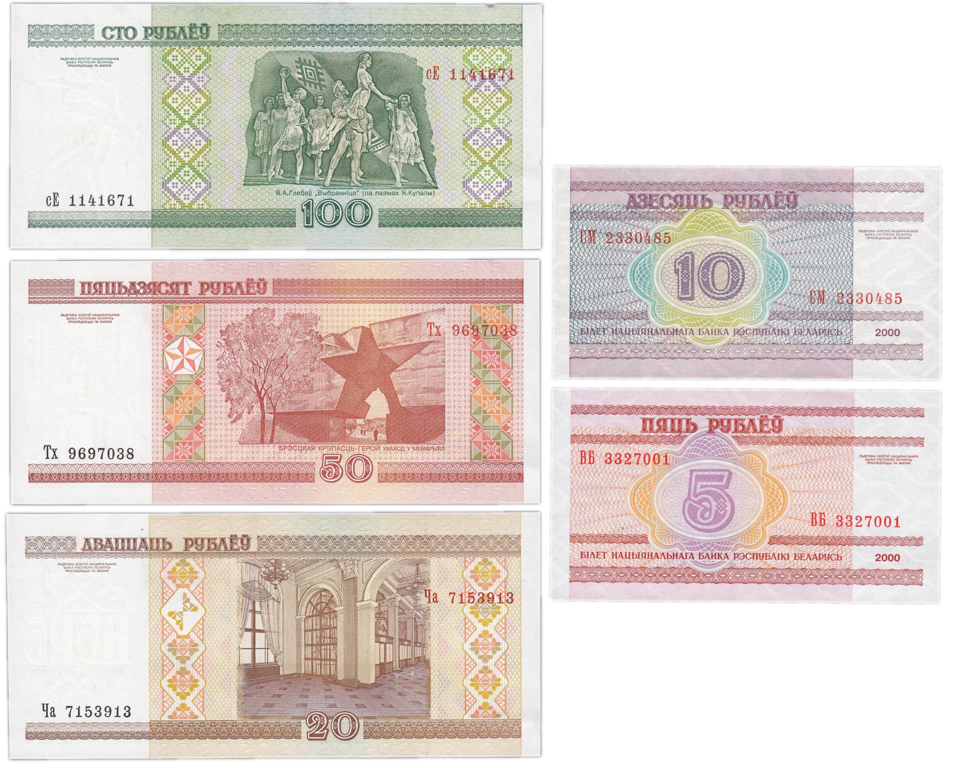 Беларусь набор из 5 банкнот 5, 10, 20, 50, 100 рублей 2000