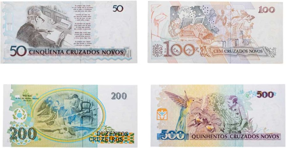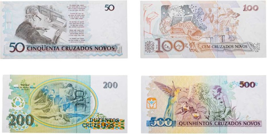 Бразилия набор из 4 банкнот 50, 100, 200, 500 крузейро 1990