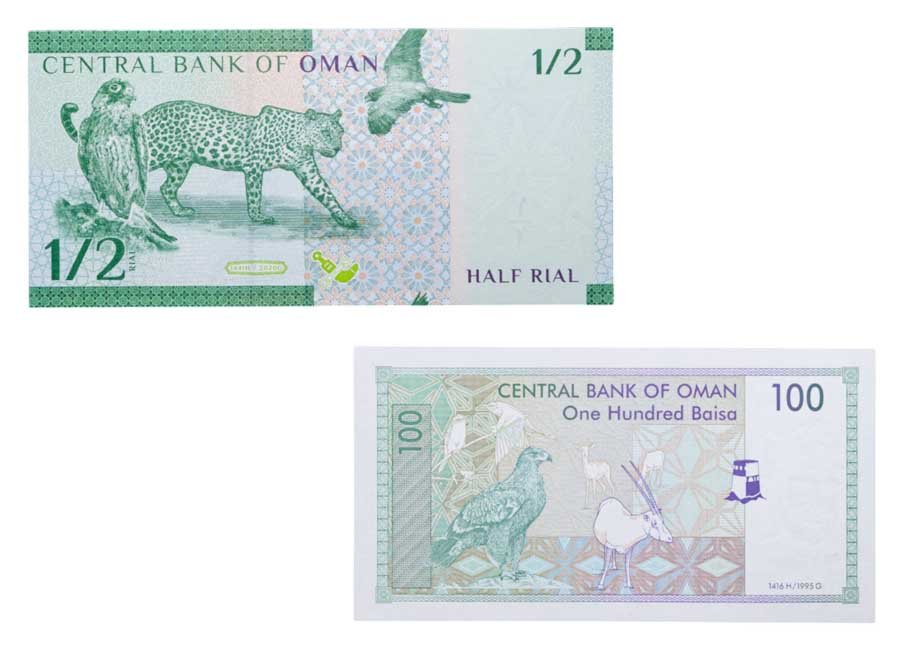 Оман набор из 2 банкнот 100 байса и 1/2 риала 1995 - 2020