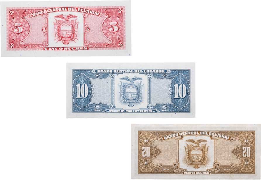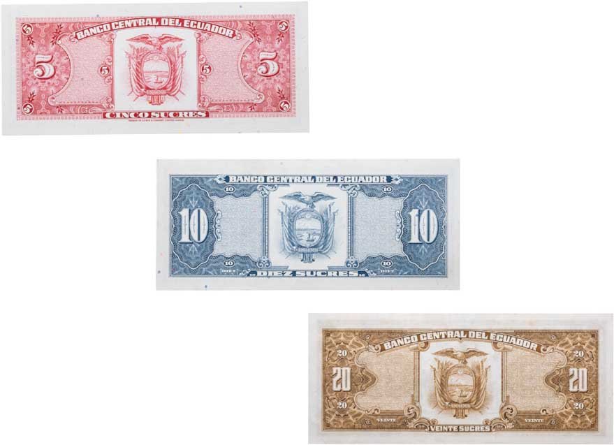 Эквадор набор из 3 банкнот 5, 10, 20 сукре 1986 - 1988