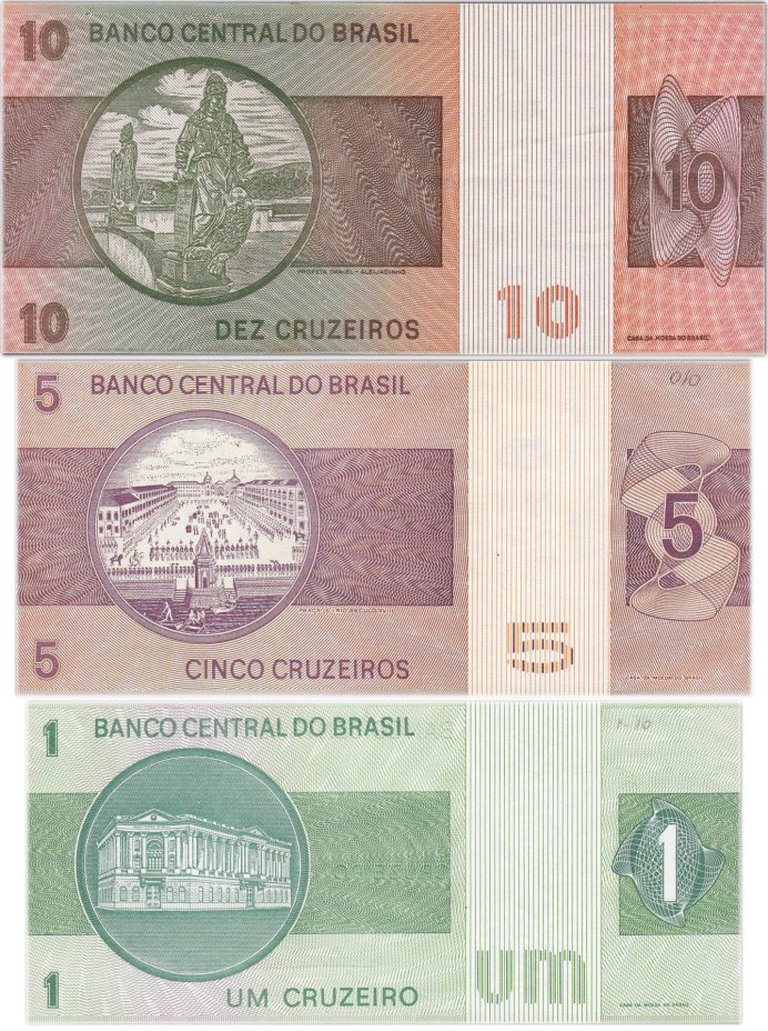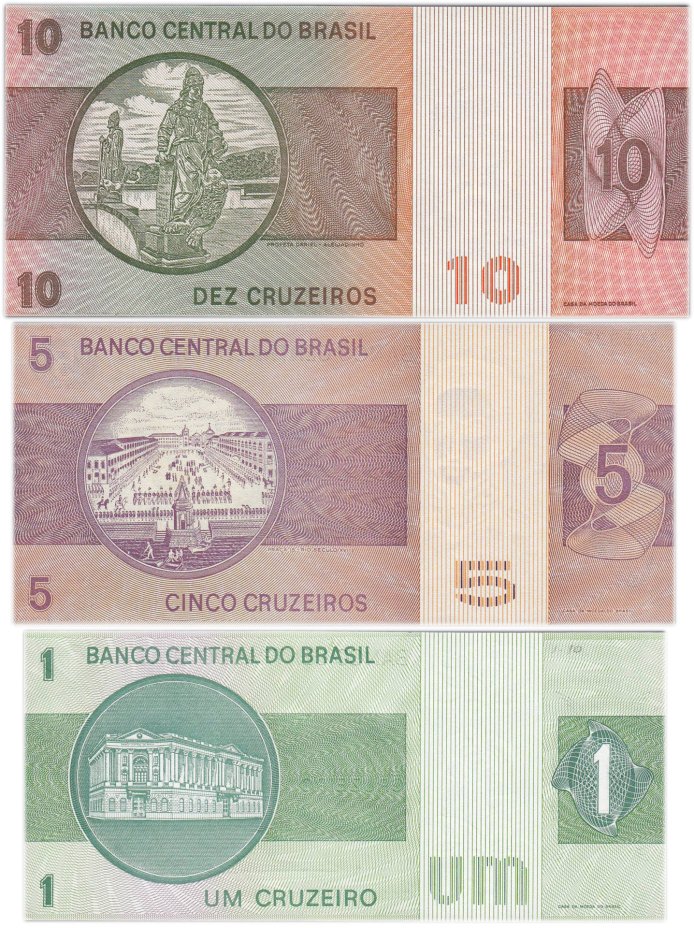 Бразилия набор из 3 банкнот 1, 5, 10 крузейро 1975-1980 ПРЕСС