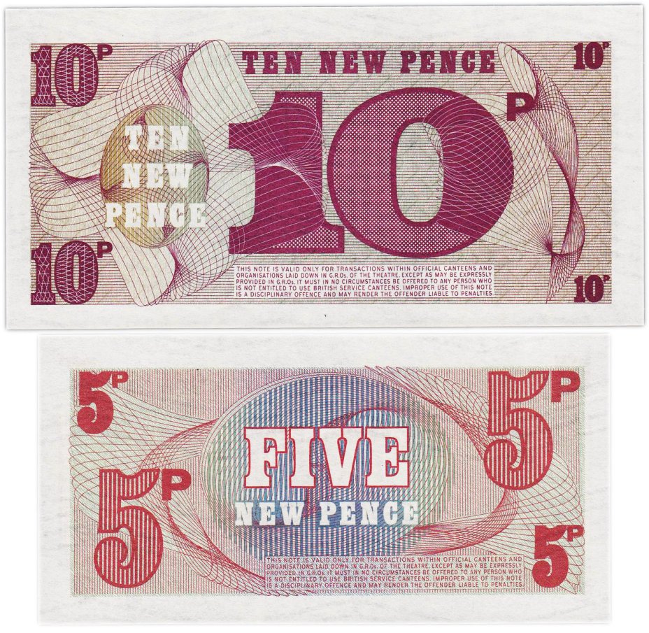Англия (Британские вооруженные силы) набор из 2 банкнот 5, 10 новых пенсов 1972 (6-я серия)