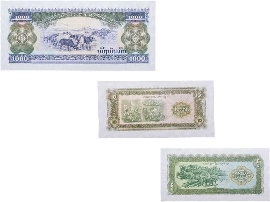 Лаос набор из 3 банкнот 5, 10, 1000 кип 1979 - 1998