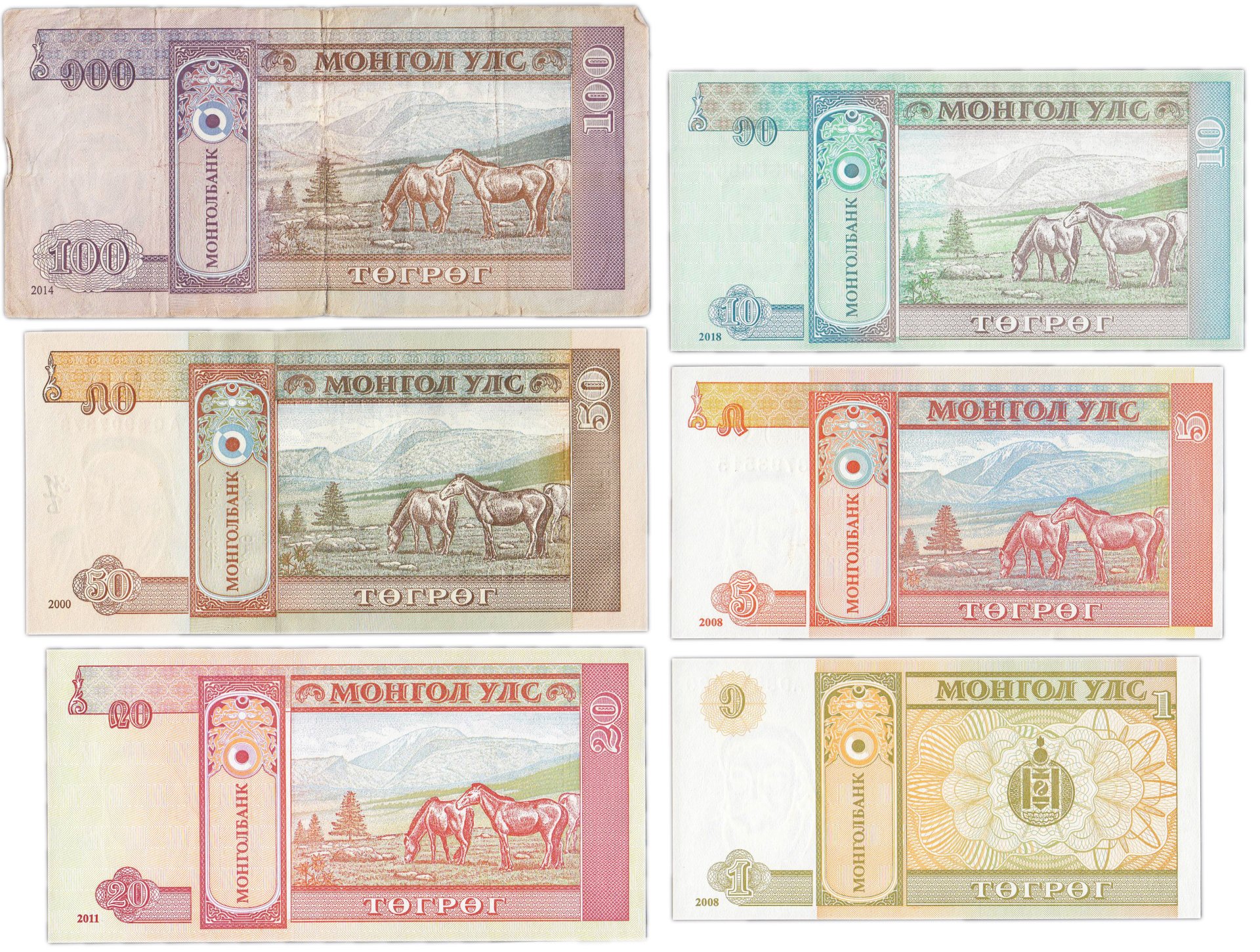 6. Монголия 100 тугриков 2008 (Pick 65b)