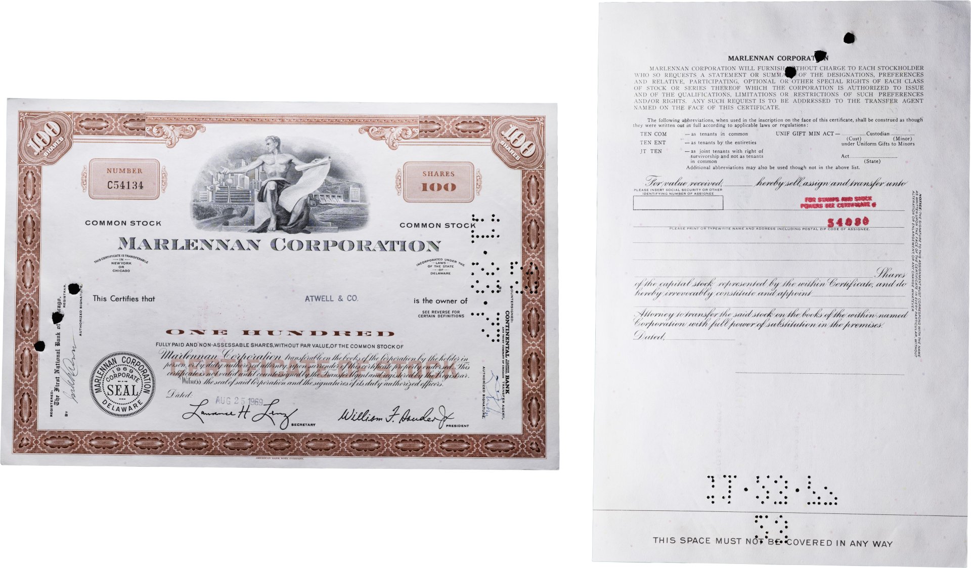 Купить Акции США MARLENNAN CORPORATION, 1969