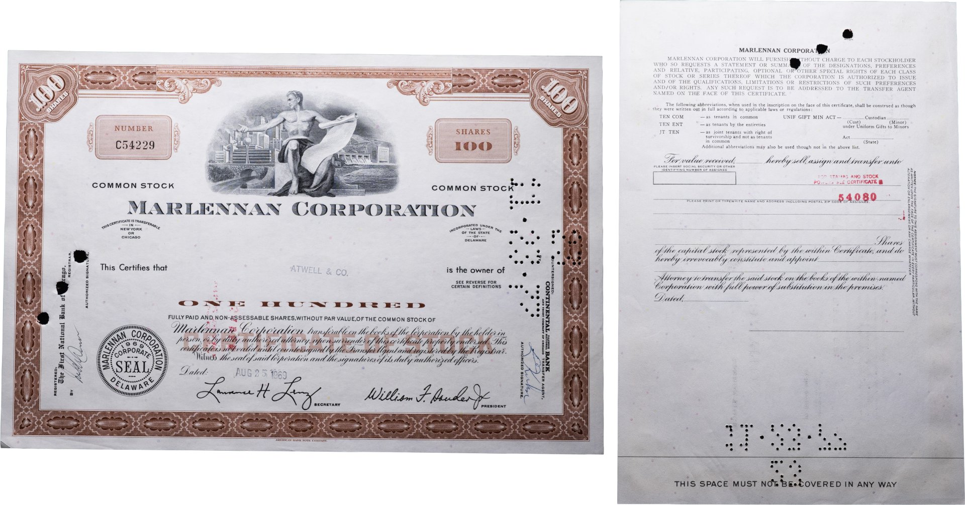 Акции США MARLENNAN CORPORATION, 1969