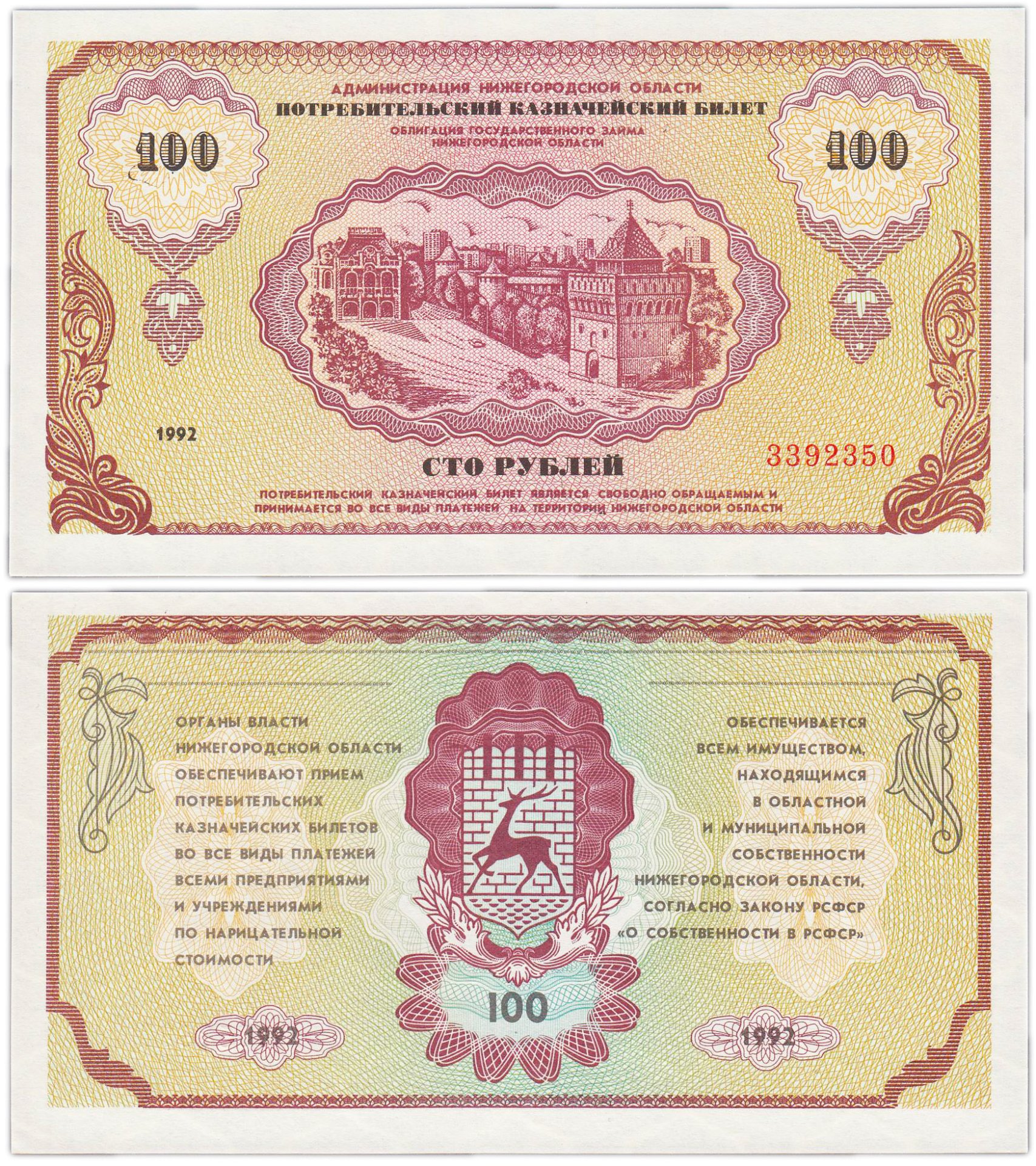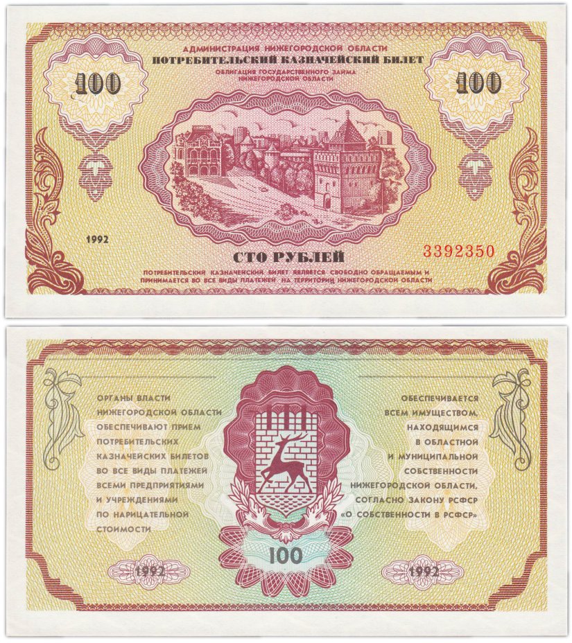Казначейский билет / облигация государственного займа Нижегородской области (т. н. «Немцовка») достоинством в 50 рублей (1992 г.)