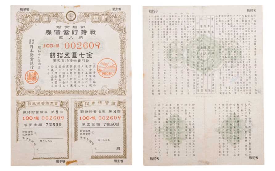 купить Япония 7,5 йен 1943 год Облигация императорского военного займа