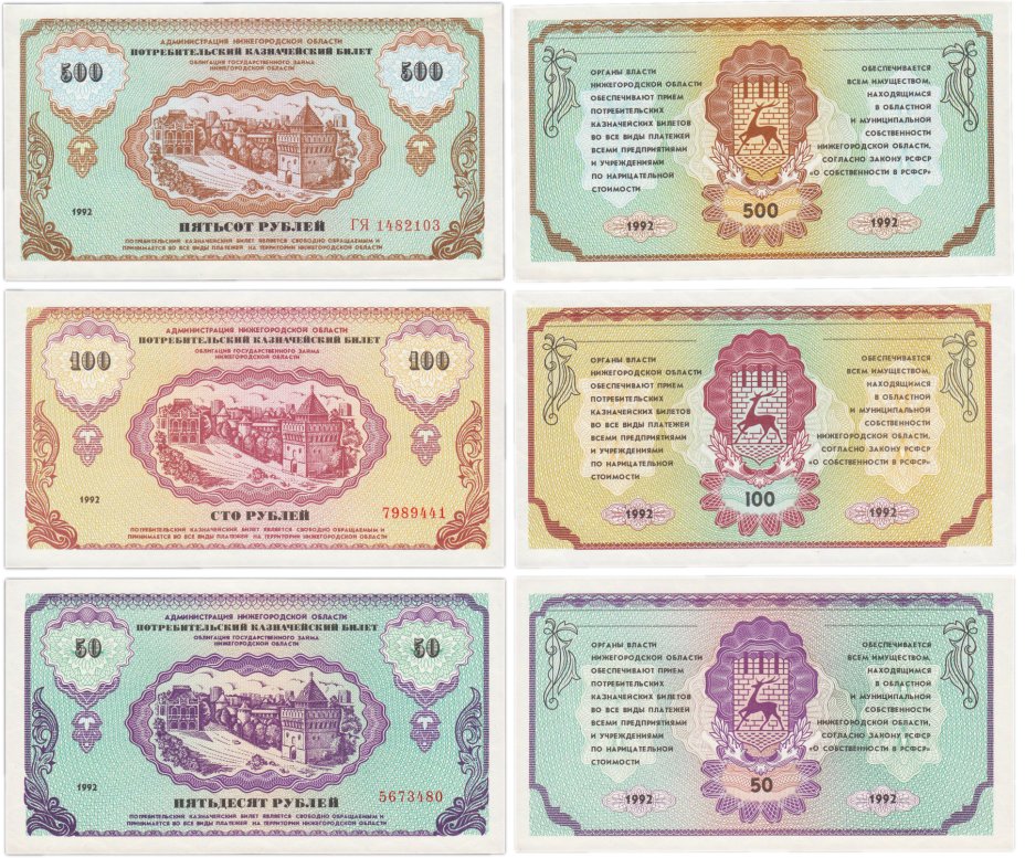 Кроме стандартных для временных эмиссий названий вроде «фантики», «билетики» появились и более специализированные: «нижегородки», «борьки», «немцовки» (по имени и фамилии Немцова) «явлинки» (одним из авторов реформы был Явлинский). Постепенно закрепилось название «немцовки», активно использующееся и сейчас коллекционерами. В реальной жизни города Дзержинска Нижегородской области номиналы от 50 до 1000 рублей использовались как «бензиновые» деньги, то есть выдавались в счет зарплаты для покупки бензина, причём действовали они в течение краткого срока — весны 1992 года. Номиналы же в 1000, 5000 и 10 000 рублей использовались как облигации областного займа. Покупка и регистрация их производилась только при наличии паспорта и областной прописки.
