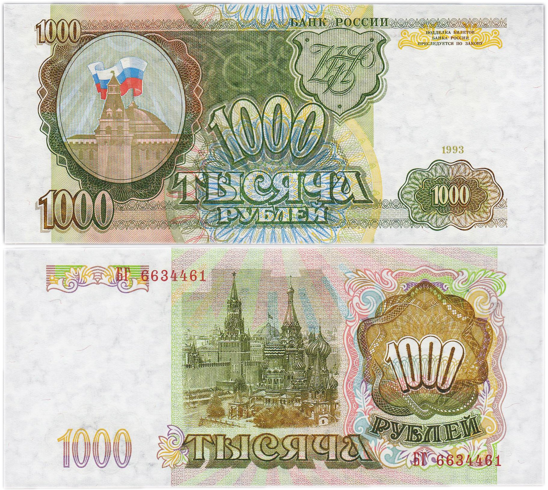 Купить 1000 рублей 1993 тип литер Большая/Большая, наклон звёздных дорожек водяного знака