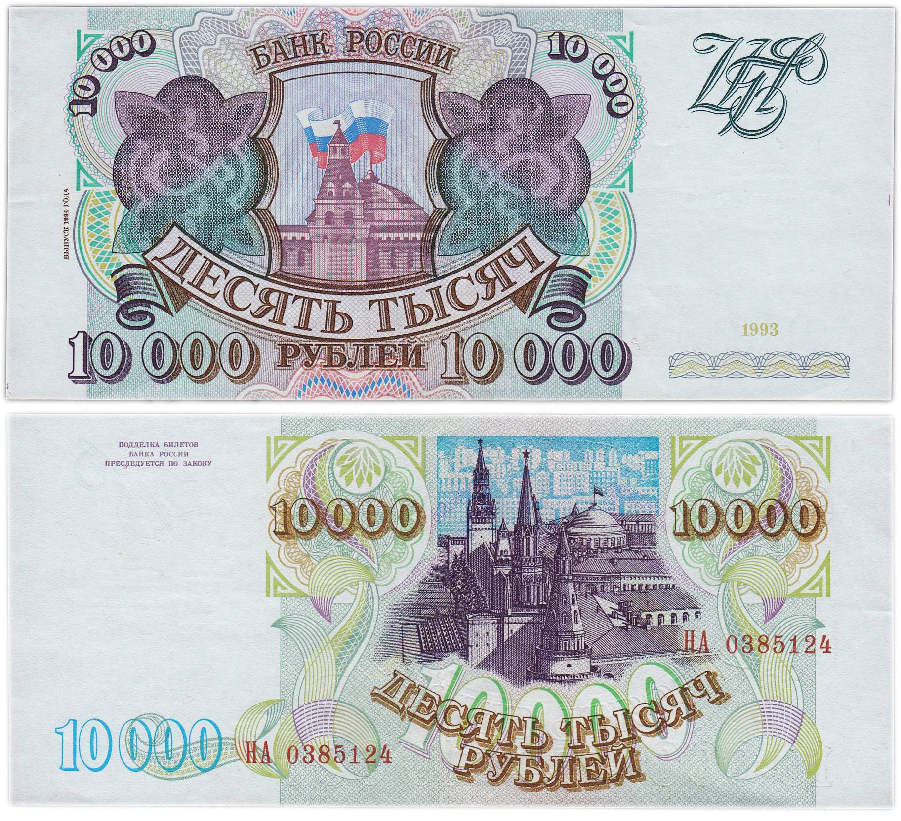 10000 рублей 1993 (модификация 1994) серия НА