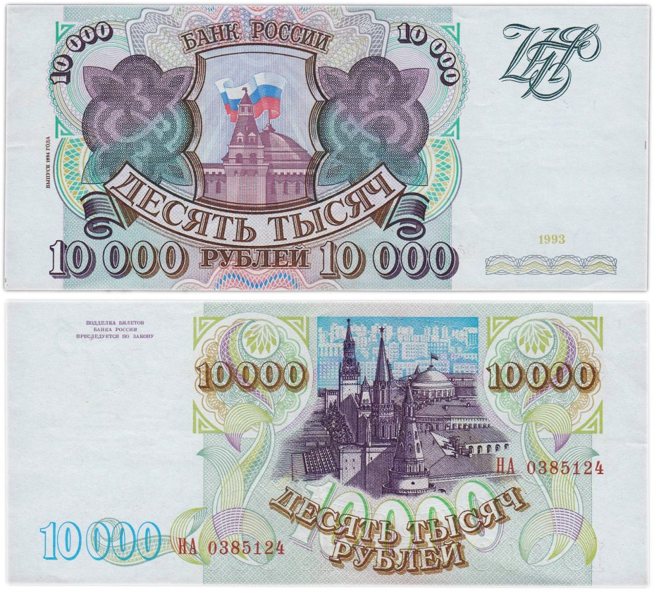 купить 10000 рублей 1993 (модификация 1994) серия НА