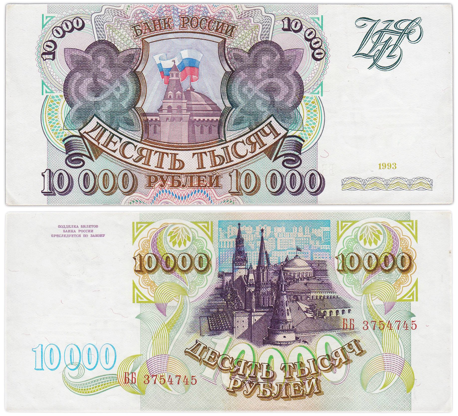 Купить 10000 рублей 1993 (без модификации) серия ББ