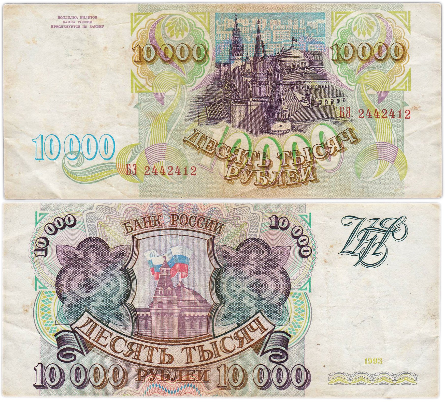10000 рублей 1993 (без модификации) серия БЭ